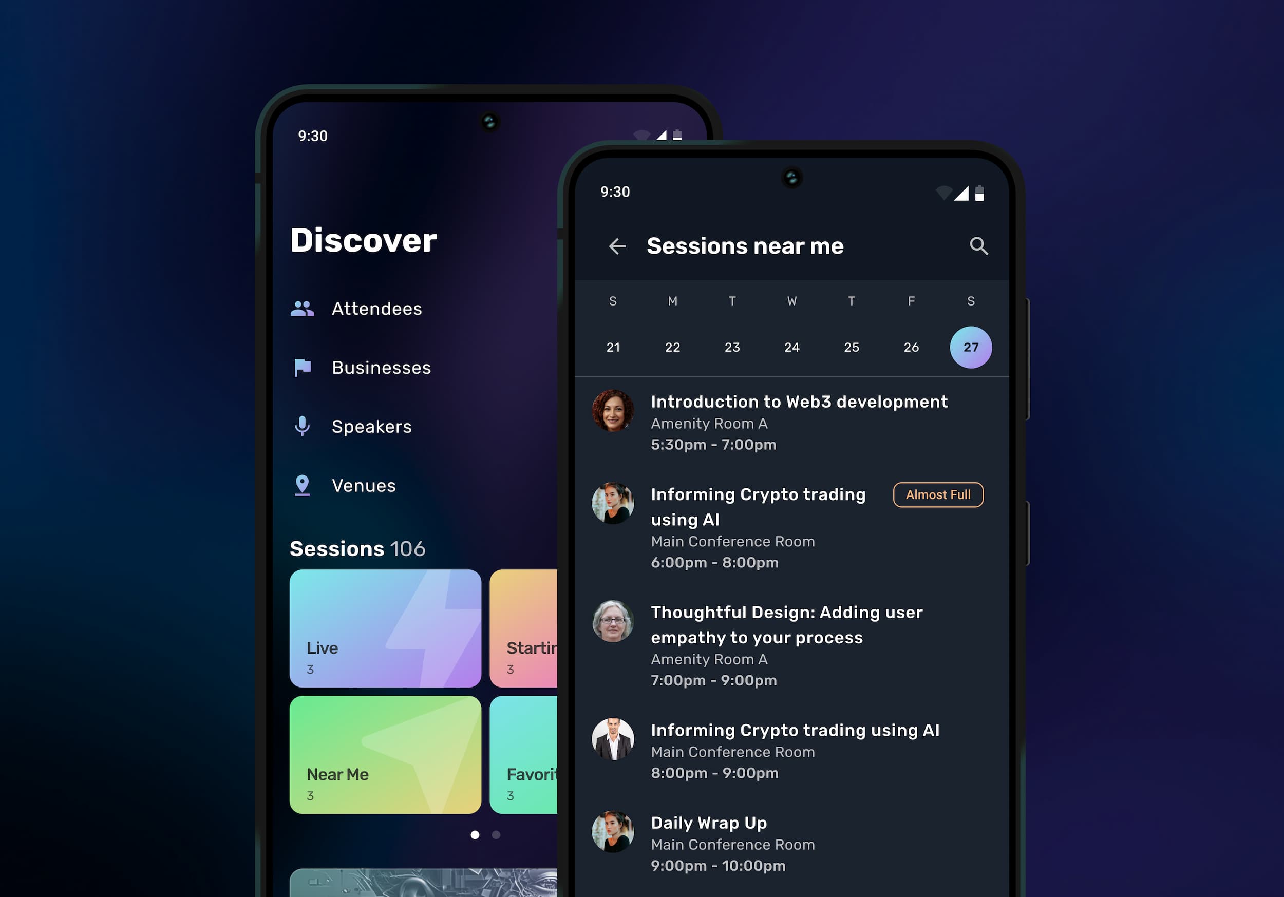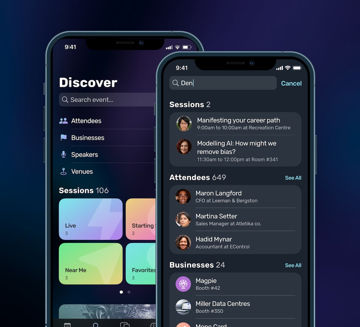 When venues are scattered across the city, the Near Me category uses attendees' locations to see what’s happening close by.