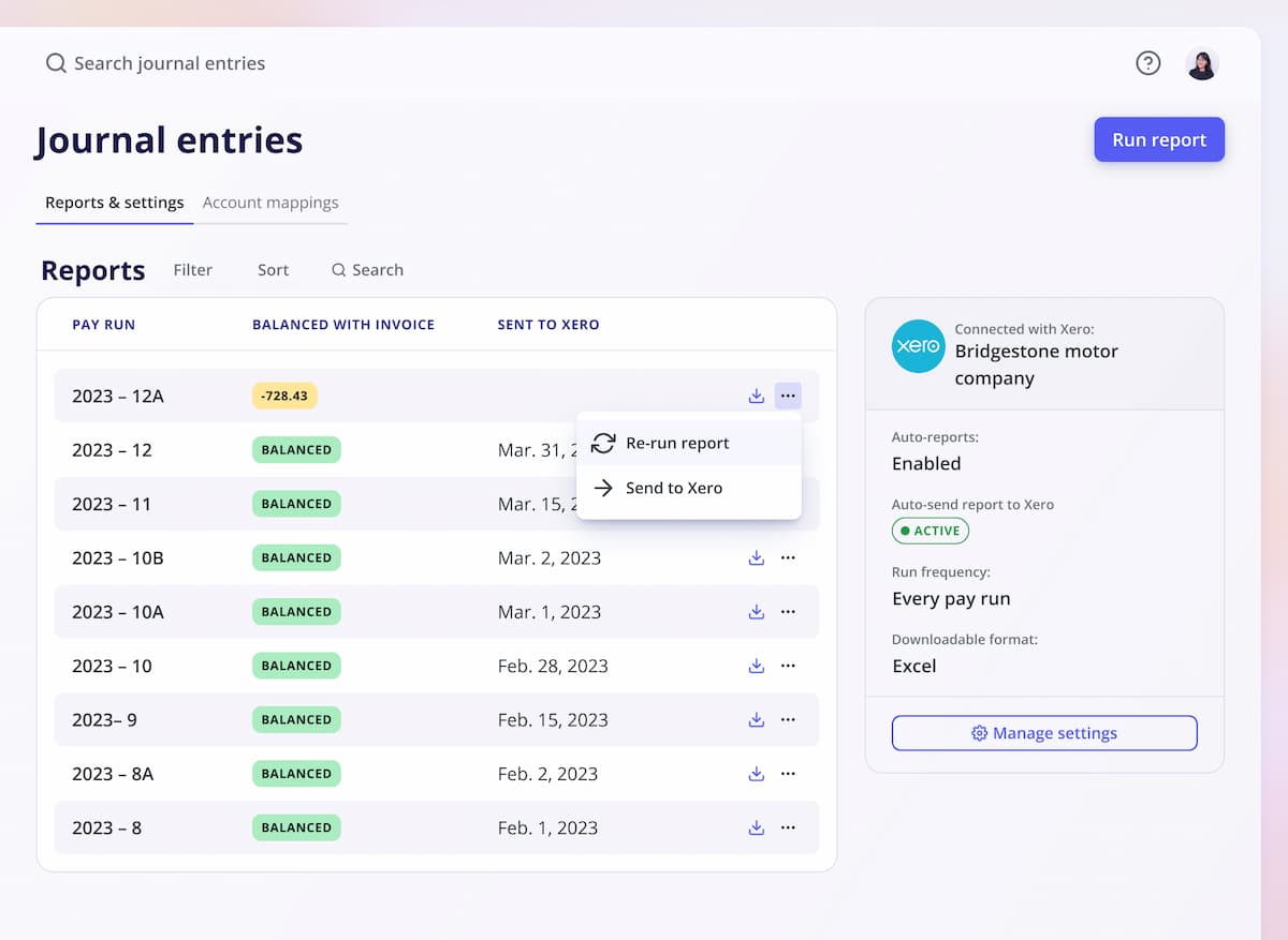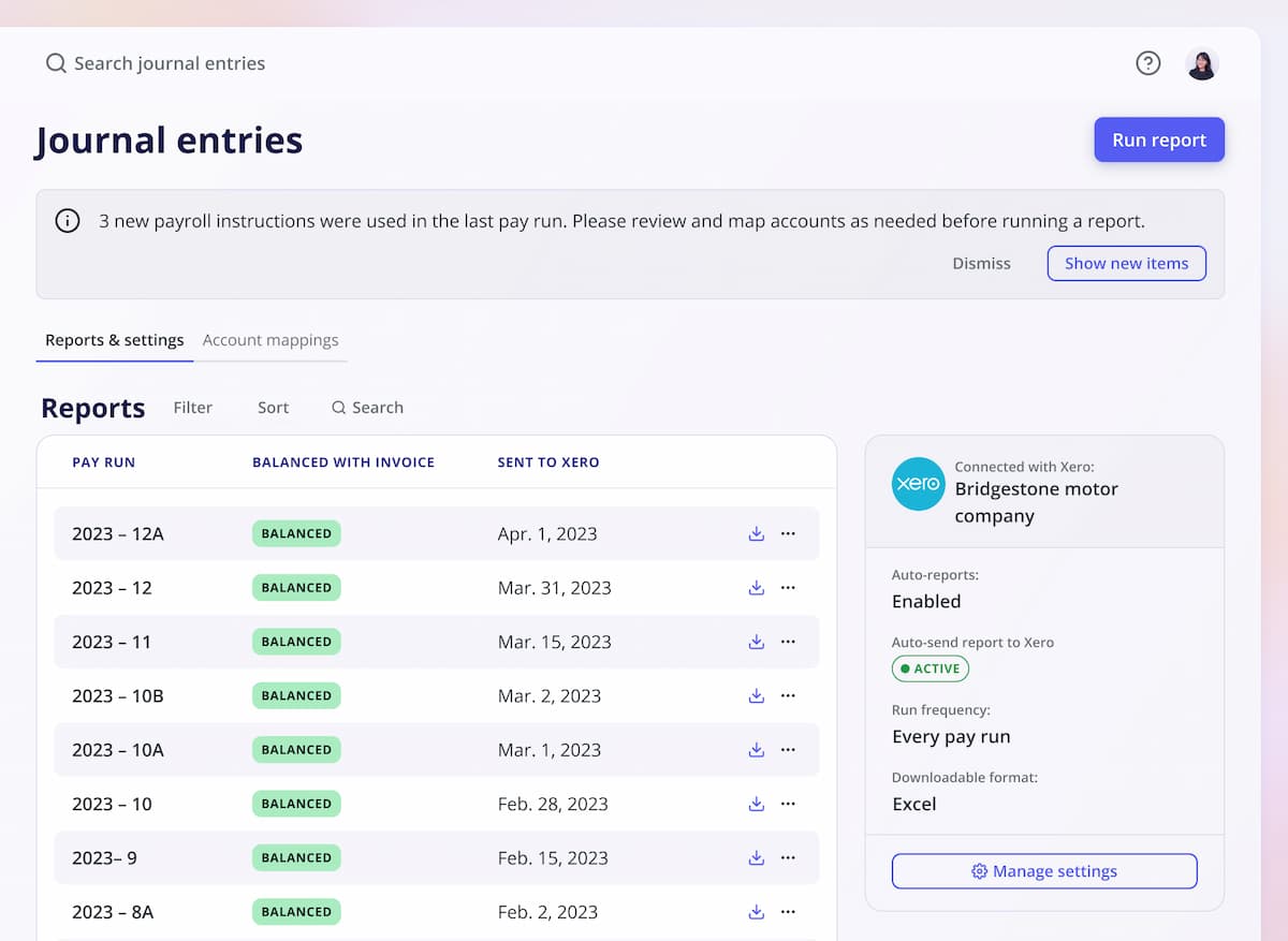 Even with smart mapping and automation, a journal entry is useless if the balance doesn’t match the payroll invoice. Oftentimes, a new payroll instruction is created in payroll and the journal entry wouldn’t balance, leaving the bookkeeper to investigate the issue causing mistrust in the system.
