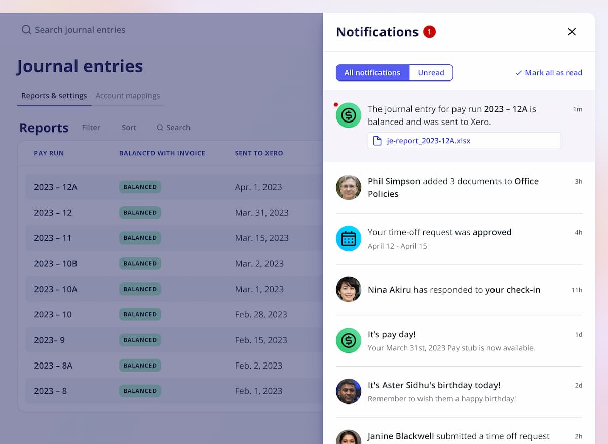 To regain their trust, we implemented checks to notify customers when entries aren’t balanced. We also added alerts when payroll data changes so customers can update their mappings to prevent non-balances.